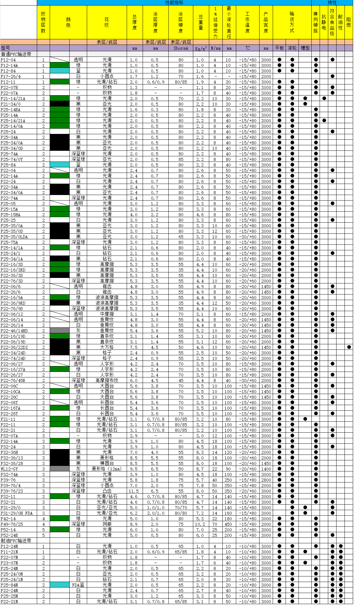 上海永利YONGLI食品輸送帶參數(shù)表 點(diǎn)擊下載