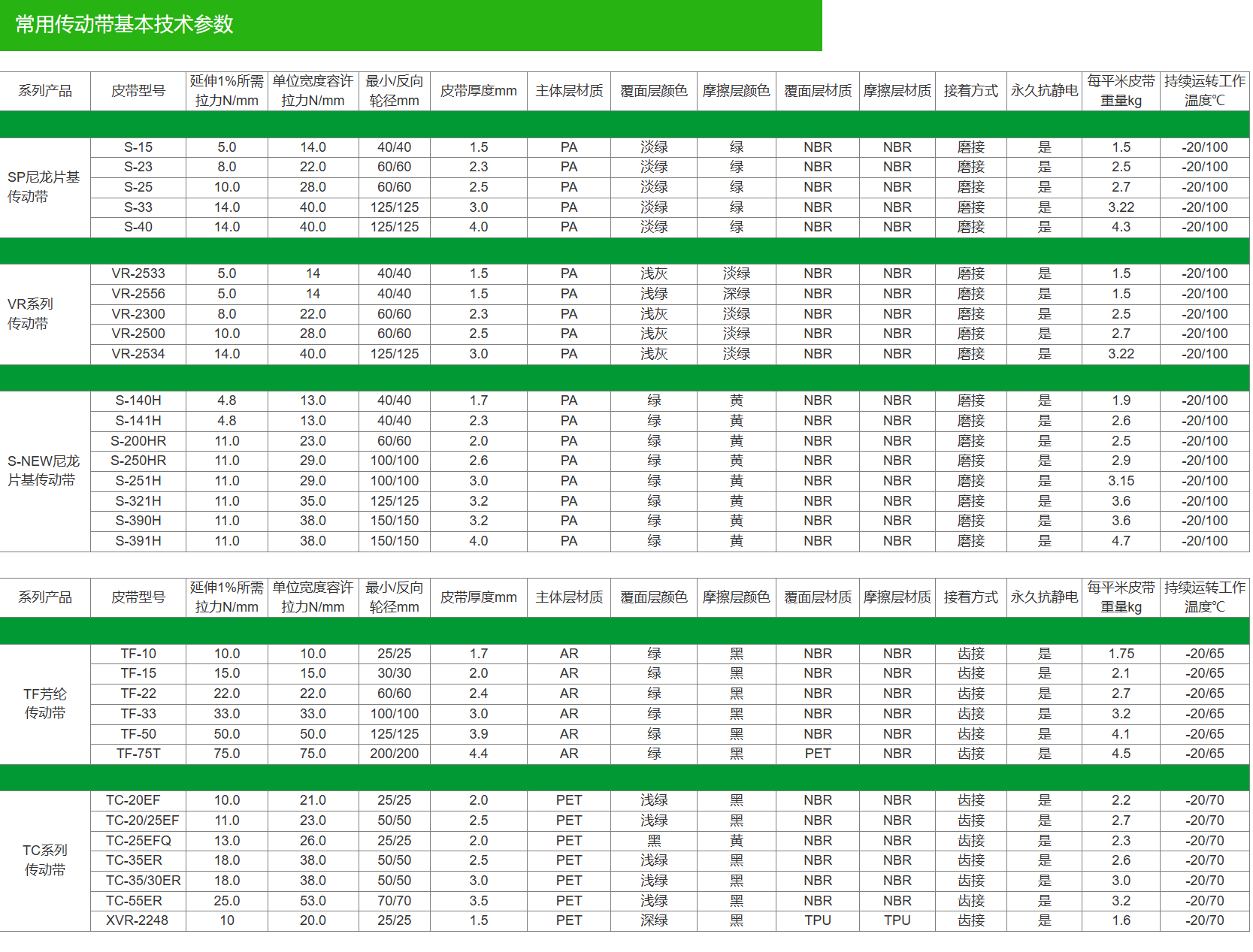 常用片基帶技術(shù)參數(shù) 點(diǎn)擊下載